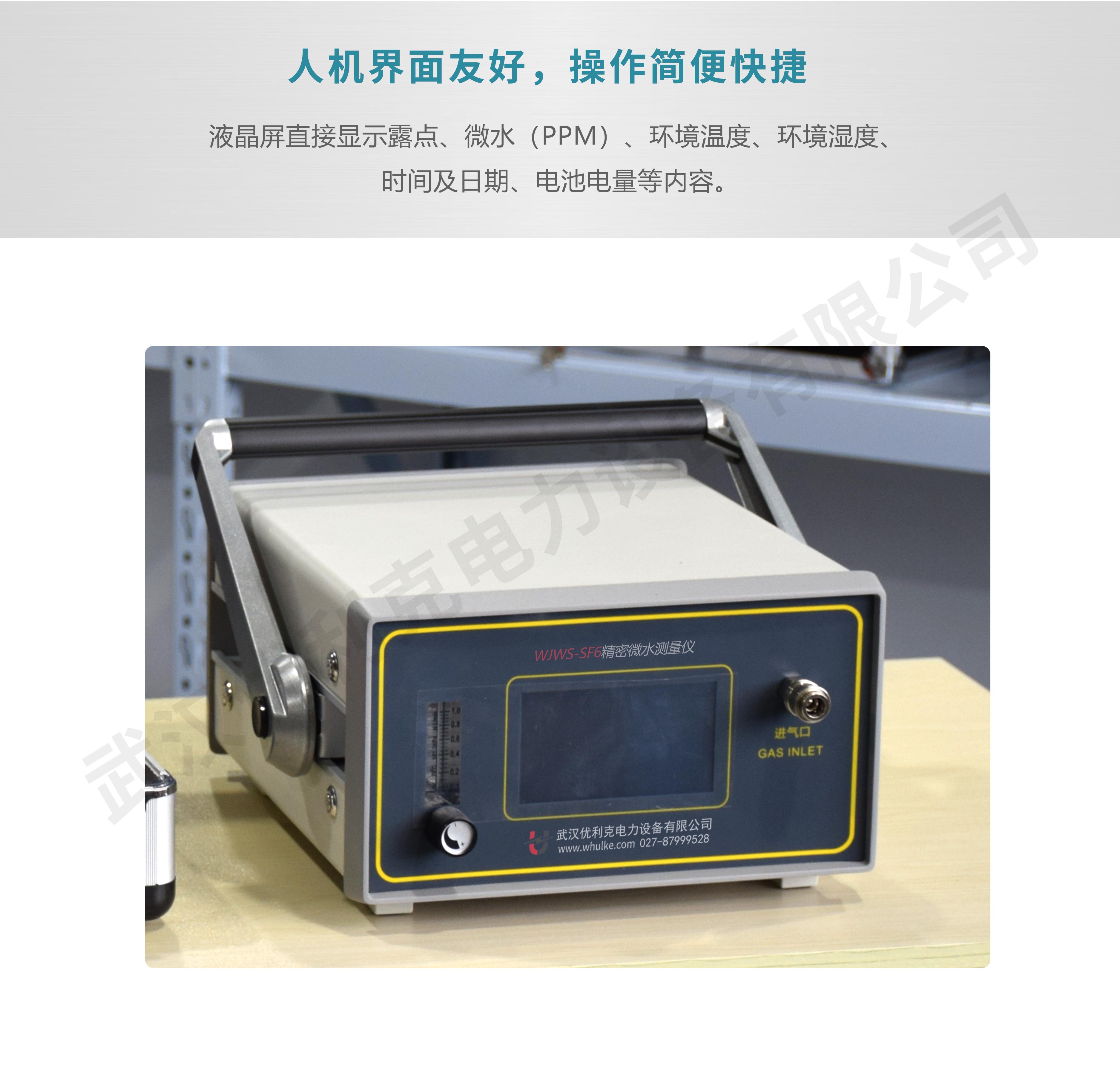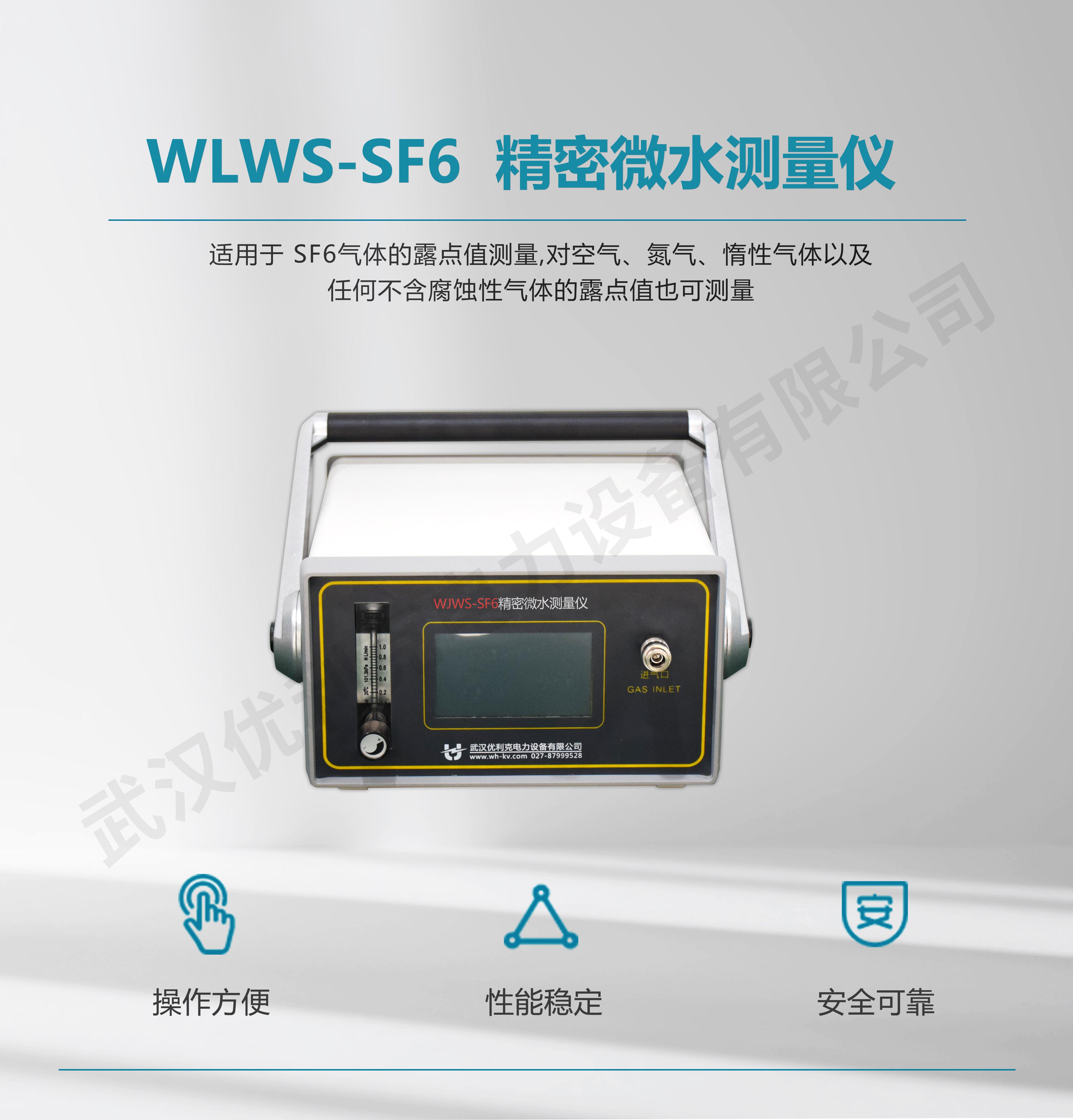 WLWS-SF6精密微水測(cè)量?jī)x簡(jiǎn)稱露點(diǎn)儀,是武漢優(yōu)利克電力設(shè)備有限公司最新開發(fā)的現(xiàn)代化、高水平、智能型測(cè)量?jī)x器。該儀器適用的領(lǐng)域非常廣泛,空氣、氮?dú)狻⒍栊詺怏w以及任何不含腐蝕性介質(zhì)的氣體的濕度測(cè)量,尤其適合于SF6氣體的濕度測(cè)量,電力、石化、冶金、環(huán)保、科研院所等部門均可采用,有著極高的性價(jià)比,特別是采用了歐洲標(biāo)準(zhǔn)技術(shù),確保數(shù)據(jù)準(zhǔn)確可靠。